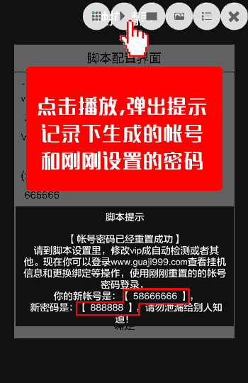 执行后弹出提示,你会得到帐号和密码,下面图片操作: