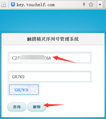 触摸精灵的更换绑定地址:http://key.touchelf.com,